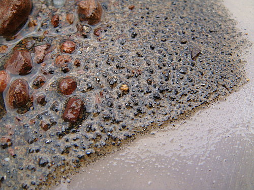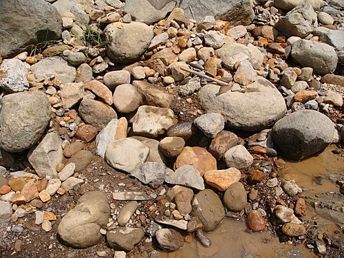 河堤邊多少會有一些水利局堆疊做為沖刷防護用的大石頭,