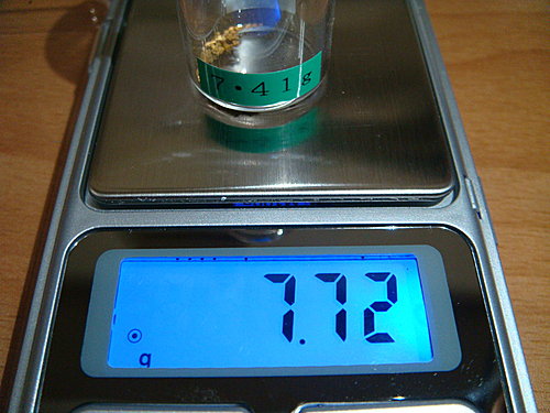 總重量竟然祗有0.31g (7.72g總重-7.41g瓶重=0.31g砂金重)