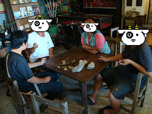 張大哥帶著大家到 “賴阿婆芋圓” 幫阿賢鑑定九份礦物…