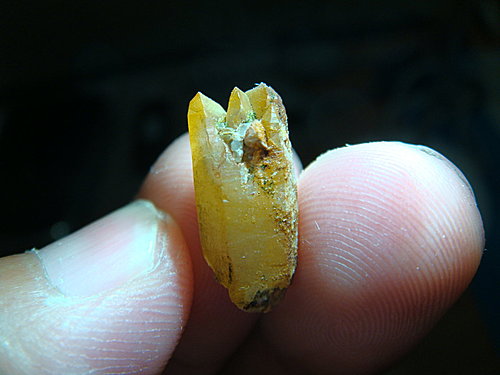 六角形扁柱身, 柱頂再分生出三支三面晶體 (可惜就是不透亮)…