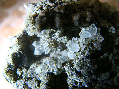 生於 “表面發黑之白石頭” 的水晶,