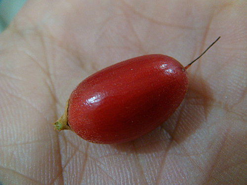 神秘果果肉吃起來像山竺… 紅色的皮則有點酸酸甜甜的..