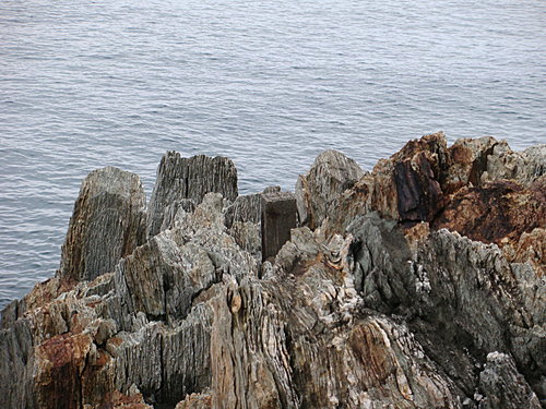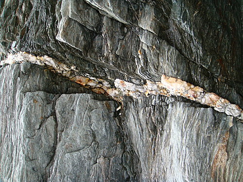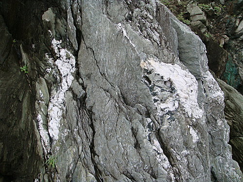 大片大片的板岩內, 大多夾著一層厚厚的石英脈….