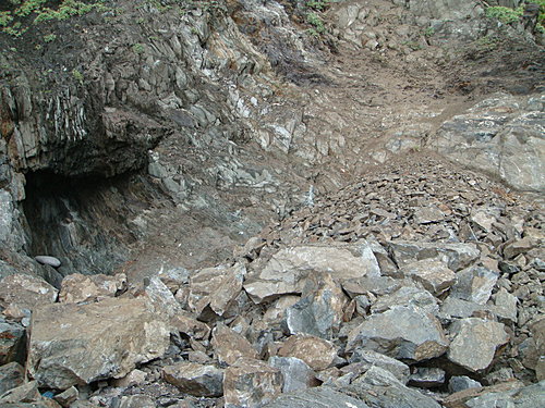 北側板岩崩塌的情形相當的嚴重… (一直後悔沒把安全帽戴著)