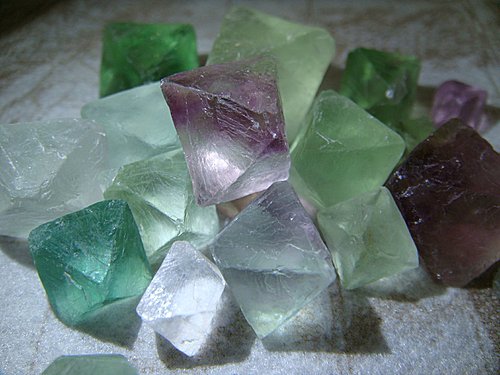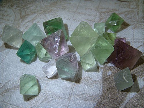 這種中國八面螢石 並非自然結晶, 大多是”人工”敲出來的!