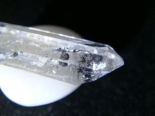 但球狀黑色結晶物可以在水晶內的水膽通道上下跑來跑去,