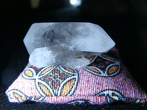 十字の雙尖水晶 2009-04-15 岩礦標本 收它有為什麼嗎??? 還真的沒有為什麼… 就祗因為它是 “十字晶”!! “咬雙尖水晶的十字晶”… 牛記得有位格友也有收類似的藏品.. 出動吧~ 小花, 去金九幫牛咬點水晶回來!!! (瘋~) 收藏日: 2009/04 據賣方表示, 黑色的內含物是 “黑碧璽”… (管它的, 就叫它小花了!!) 花: 是的!! 主人~ 偶會幫你咬晶晶回來!!! 汪~~ 牛: 是晶晶~ 不是晶晶腸呦!!