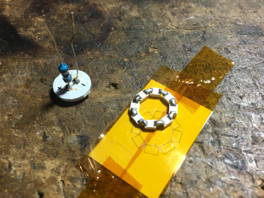 將8顆3020 LED對位排好, 直接就可以上鍚, 連接線都不用..