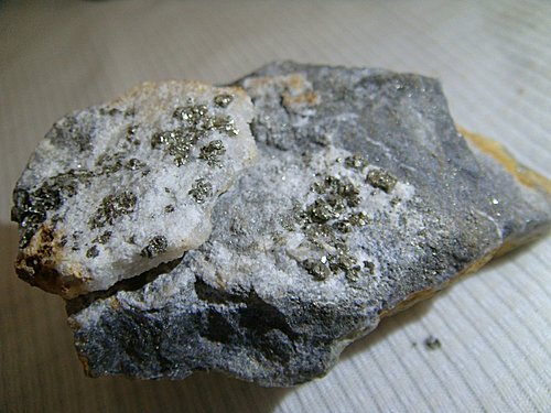 今天敲下來的黃鐵礦… 長在石英/砂岩內…