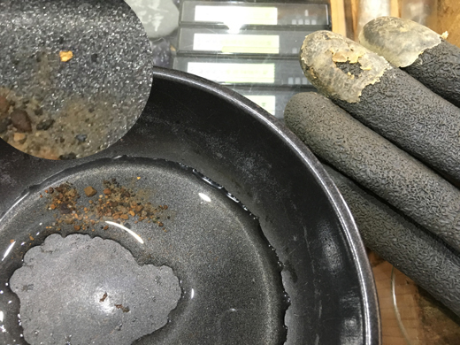 把砂子拿來淘淘看… 沒想到還真的淘出一粒小砂金… (笑)