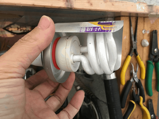 鋁罐底部開一個圓孔, 剛好可以讓E27燈泡穿過, 旋進蛇管燈座,
