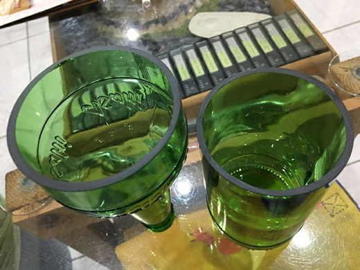 用手邊的充電電鑽來打磨切開後的玻璃瓶… 好用又不危險!