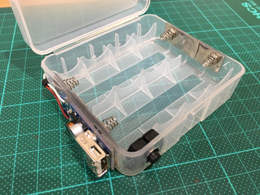 平常是電池收納盒, 開關一開就成了簡易鋰鐵行動電源了!!