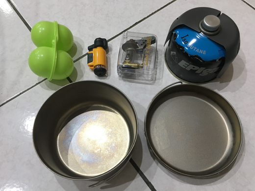 這是輕量化後的能量補充裝備, 打火機/爐頭/瓦斯(110g)/個人鍋