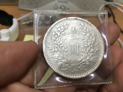 這天, 就在望河興嘆的前幾分鐘.. 找到這枚卡在溝縫中的袁大頭..