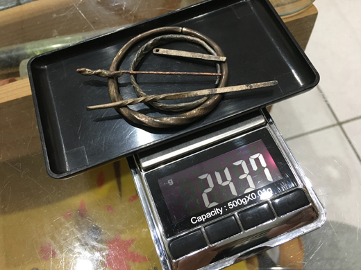 秤了下手邊從河裡出土的銀器, 總重還不到25g..