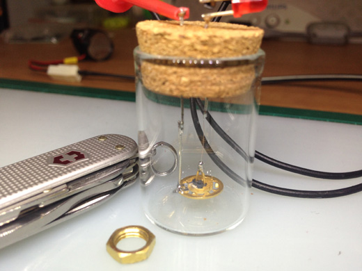 去年六月, 用幾個鍍金的小東西, 做了這個搖動開關…