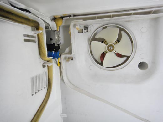 RE3031N 的送風馬達就藏在冷凍室的後擋板內..
