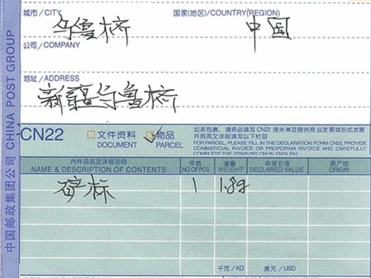某天, 在淘寶上連繫到一位新疆本地的賣家..