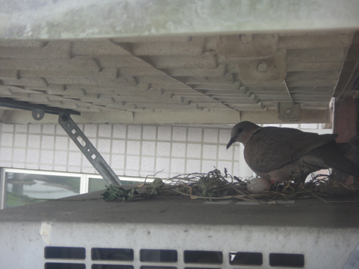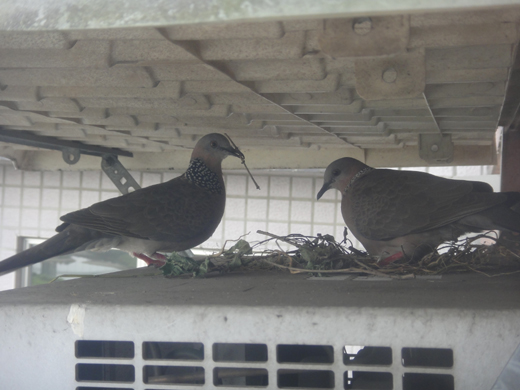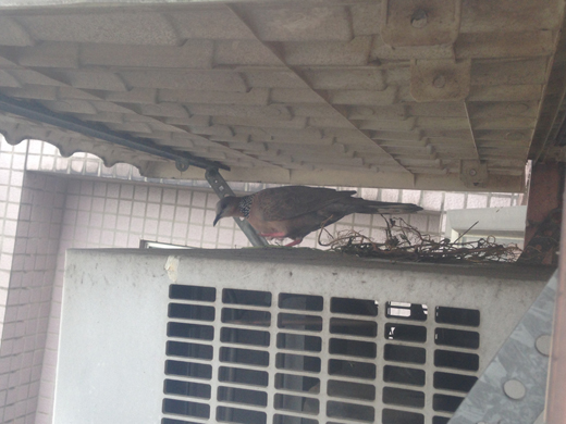 去年… 就曾經有斑鳩到室外冷氣機與雨遮板的夾層中築巢…